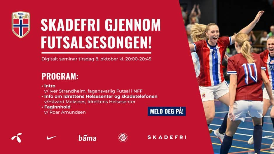 I samarbeid med Idrettens Helsesenter og Skadefri inviterte Norges Fotballforbund forrige uke til digitalt seminar om skadeforebygging i ungdomsfutsal/fotball, med spesielt vekt på overgangen mellom fotball- og futsalsesong.